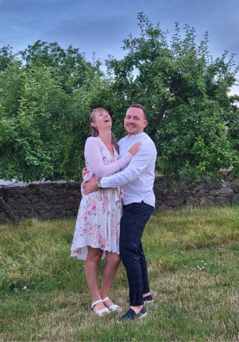 Poznali jsme se díky přátelům šťastnou souhrou náhod na festivalu vína 🍷 a hned od první skleničky bylo jasné, že mezi námi přeskočila pomyslná jiskra✨. Po roce a půl jsme se k sobě přestěhovali a o pár měsíců později na závodech Formule 1 mě požádal Honza o ruku 💍 a já řekla ano 🤩. Své další ano si řekneme již brzy. Buďte u toho s námi!